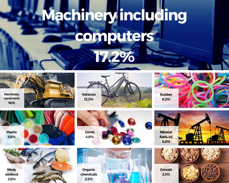Thailand’s top 10 exports (2018):