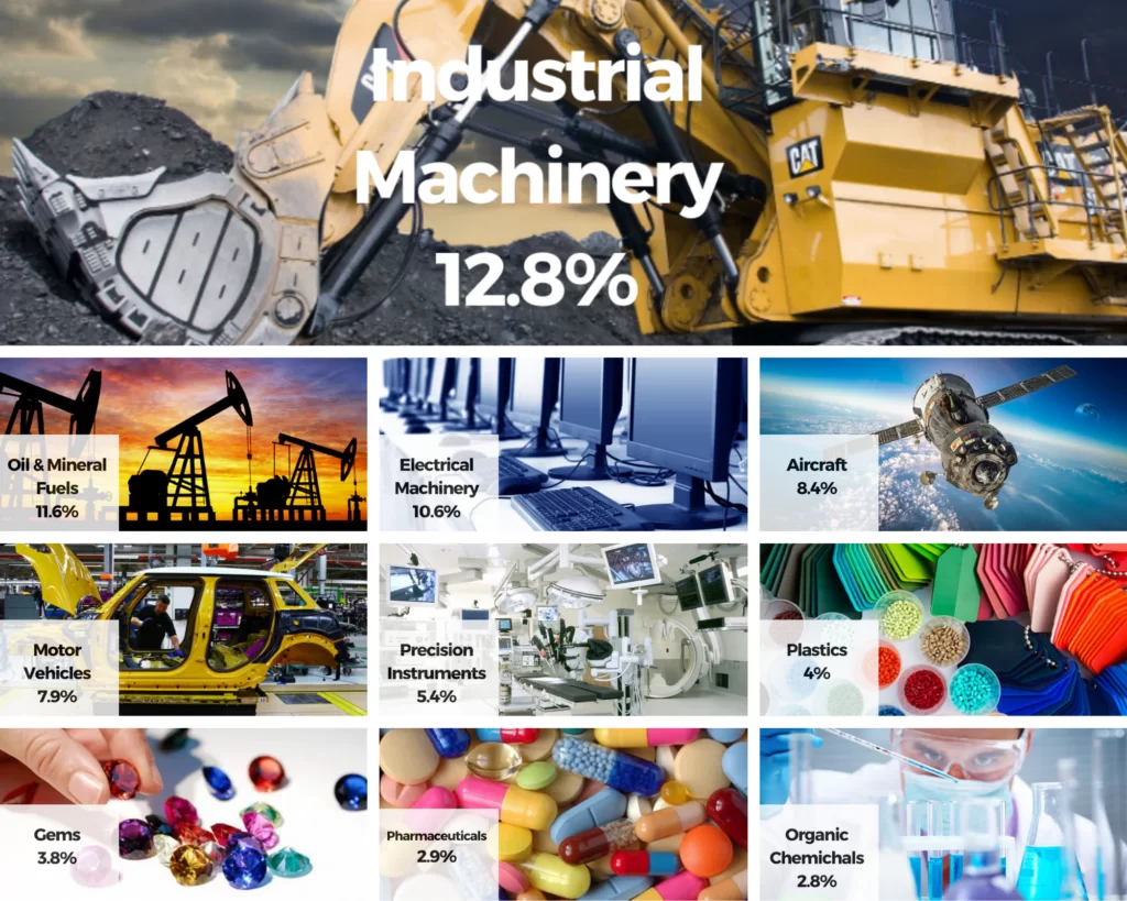 - Oil & Mineral Fuels – $192.7 billion (11.6%)
